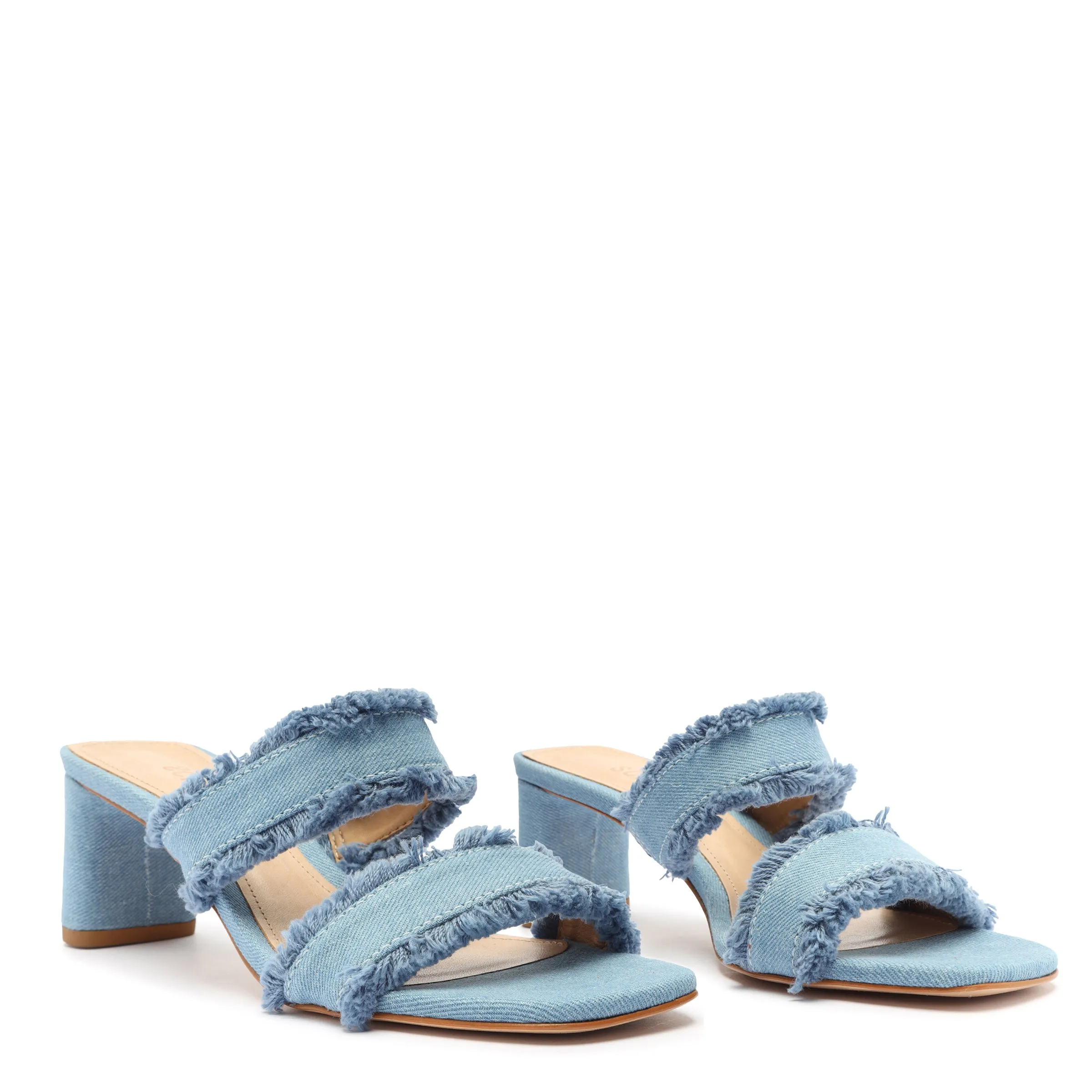 Fringed fabric straps and a chunk heel define the Amely , a slip-on style finished with a square-shaped toe.